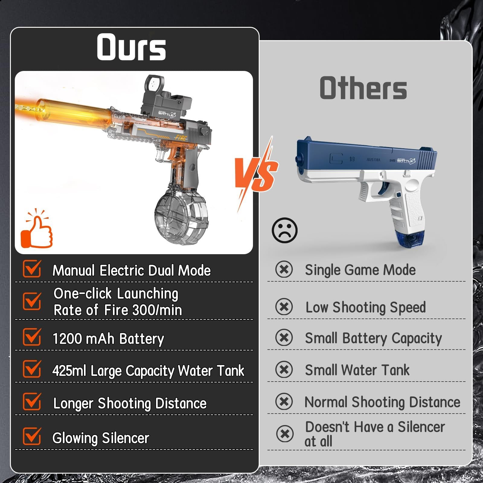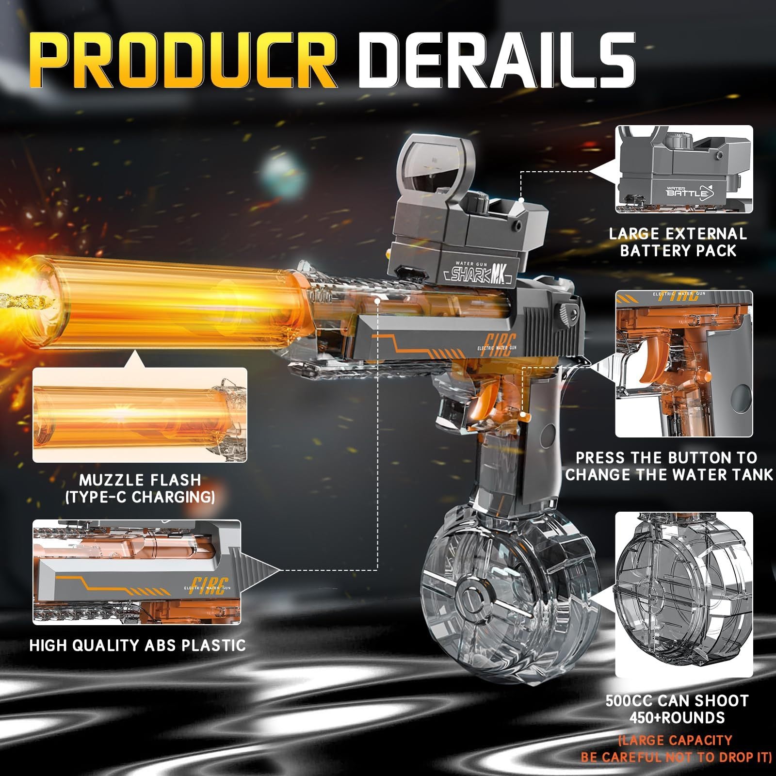 - Black/Blue Desert Eagle Linkage Electric Water Gun : This unique water gun features a striking black and blue color scheme, perfect for summer fun. It's designed for water activities, ensuring endless entertainment.