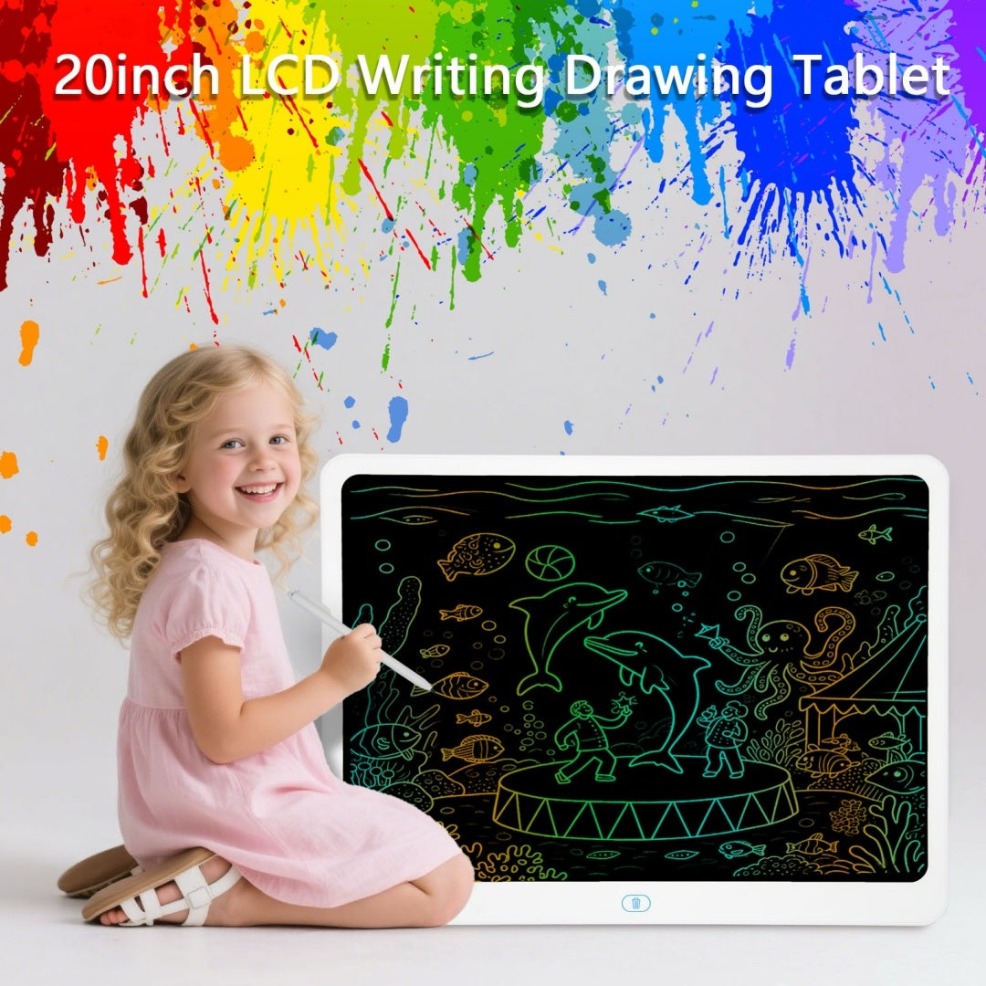 EYE PROTECTION LCD WRITING TABLET: Adopts 2025 LCD pressure-sensitive technology and 20-inch LCD colorful screen. This toddler doodle board toys without radiation, no glare, safe and comfortable even use for a long time.
