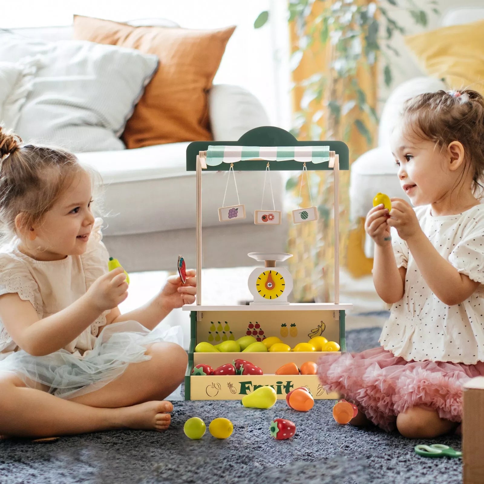 ROBOTIME Wooden Farmers Market Stand Fruit Stall Toy Grocery Store Set For Kids