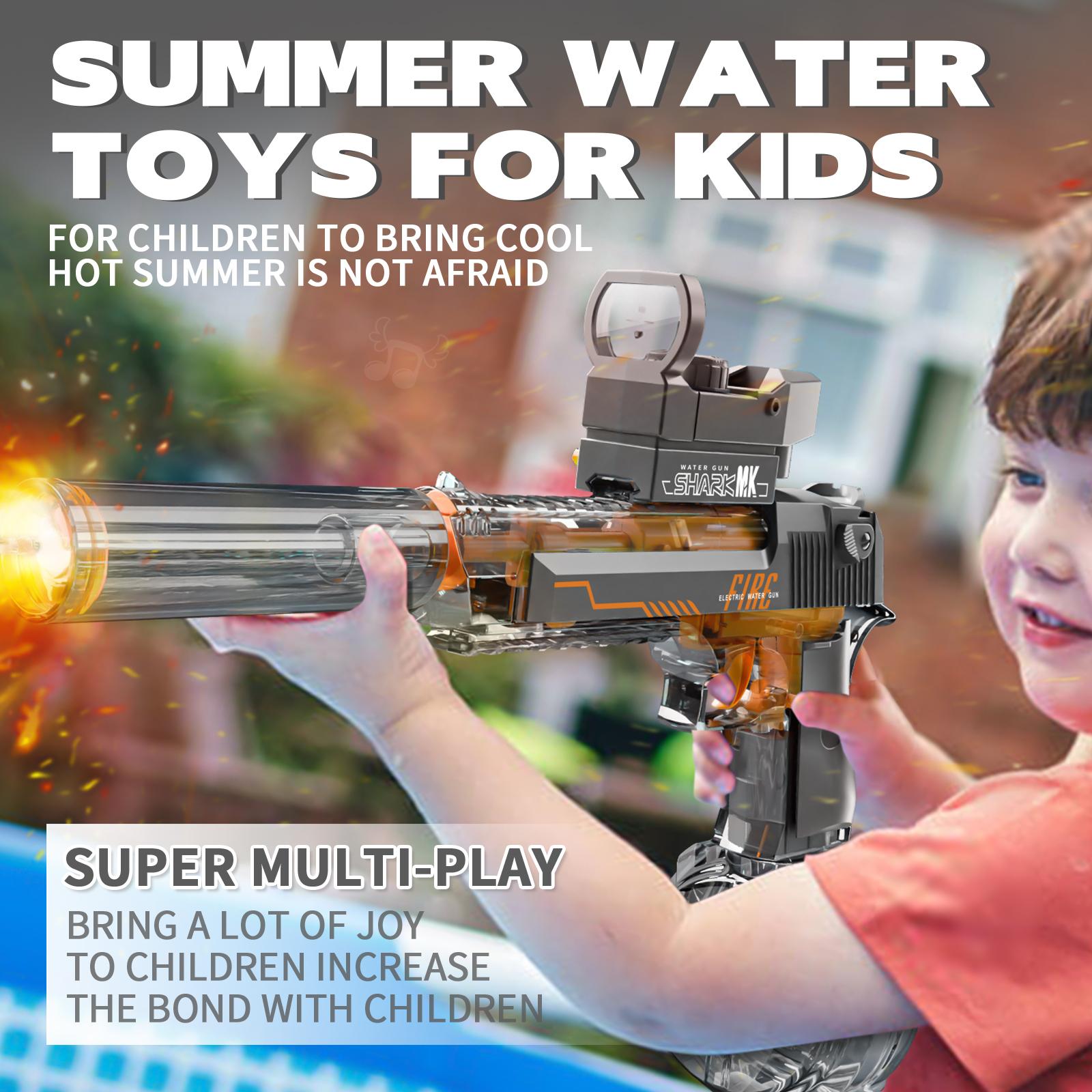 TikTok Product Description** **Paragraph 1: Introduction** Introducing the Transparent Sand Eagle Electric Water Gun – the perfect gift for summer holidays!️This incredible water gun combines excitement with safety, making it an ideal choice for kids and adults alike who want to beat the heat in style.**Paragraph 2: Key Features** Experience the thrill of the Transparent Sand Eagle Electric Water Gun, designed with a transparent body that lets you see the water reservoir and mechanism in action.It’s not just visually stunning; it’s also incredibly functional, thanks to its electric pump that powers strong, continuous water streams.Perfect for soaking your friends and family during those hot summer days!**Paragraph 3: Safety & Enjoyment** Safety is our top priority, which is why the Transparent Sand Eagle Electric Water Gun is made from high-quality, non-toxic materials.️Rest assured that your little ones can enjoy endless hours of fun without any safety concerns.Plus, its ergonomic design ensures a comfortable grip, making it easy to handle even for younger children.**Paragraph 4: The Perfect Gift** Looking for the ultimate summer gift?Look no further!The Transparent Sand Eagle Electric Water Gun is not only safe and enjoyable but also makes a statement with its sleek and modern design.It’s the perfect addition to any summer bash, pool party, or beach day, ensuring that everyone has a blast and creates unforgettable memories. Don’t miss out on the fun – grab your Transparent Sand Eagle Electric Water Gun today and make this summer one to remember!️